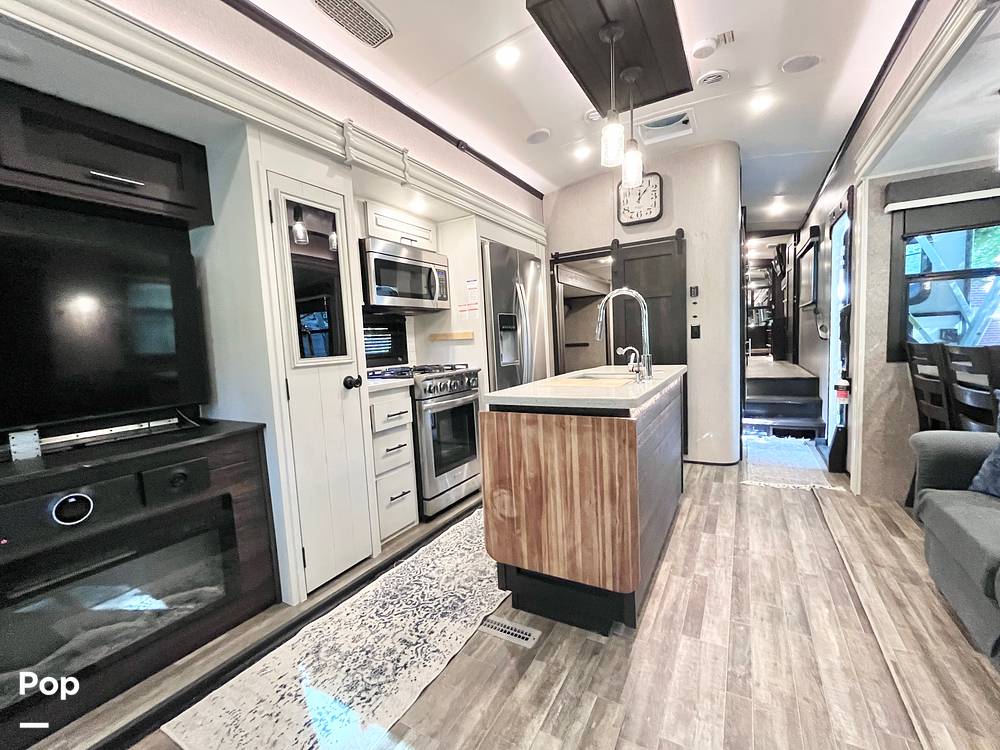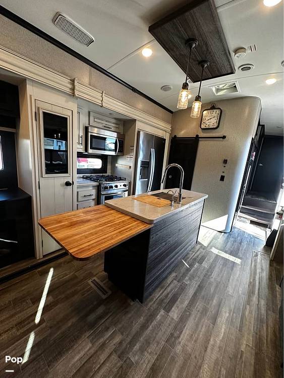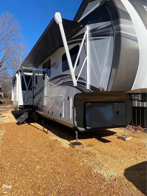Step inside and be greeted by a beautifully appointed interior that combines style and functionality. The North Point 377RLBH features a well-equipped kitchen with modern appliances, including a full-size refrigerator, microwave, and oven, ensuring you can prepare delicious meals on the road. The living area is a haven of relaxation, boasting plush seating and a state-of-the-art entertainment system, perfect for unwinding after a day of exploration. The RV also includes a cozy loft area, providing additional sleeping space or a fun hideaway for the kids.