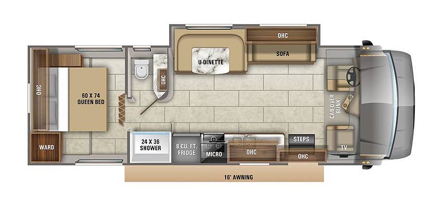 Measuring about 27 feet in length, the Jayco Redhawk offers a spacious interior without being too cumbersome to drive. Inside, you'll find a cozy living area, a fully equipped kitchen, and a bathroom with all the essentials. The kitchen comes with a refrigerator, microwave, and stove, so you can whip up your favorite meals on the go. The living area is perfect for relaxing after a day of exploring, with a comfy sofa and a dinette that converts into a bed.