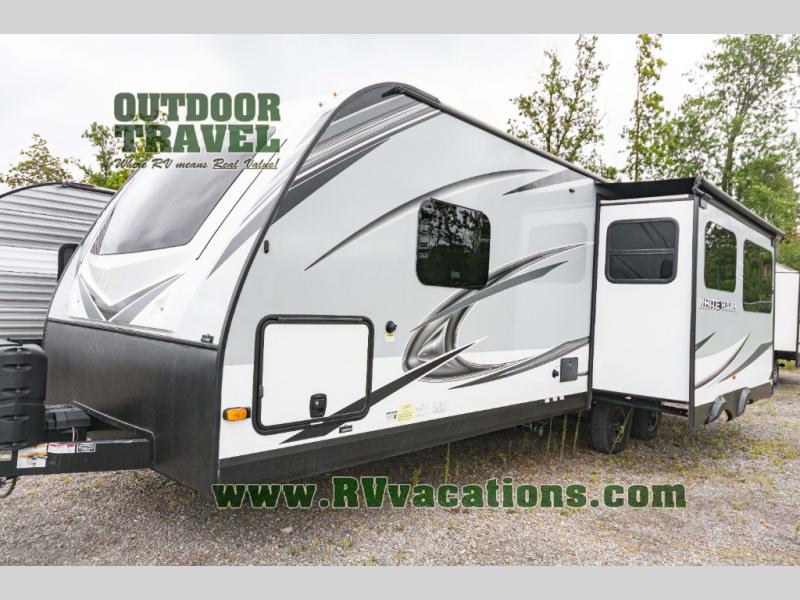 Measuring approximately 27 feet in length, the White Hawk 26RK is compact enough for easy towing yet spacious enough to ensure a comfortable stay. The thoughtful design includes a well-equipped rear kitchen, providing all the essentials for cooking on the road. The cozy living area is perfect for relaxation, featuring comfortable seating and a dinette that converts into additional sleeping space. The master bedroom offers a plush queen-sized bed, ensuring a restful night's sleep after a day of adventure.