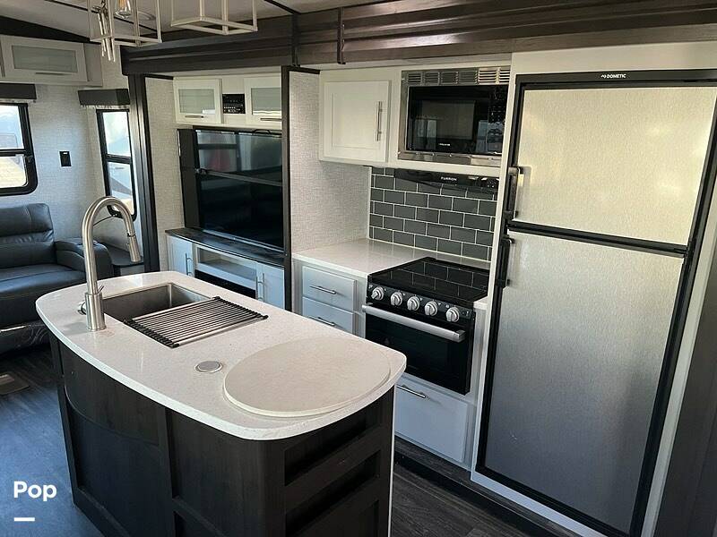 Measuring approximately 32 feet in length, the Keystone Bullet Premier provides ample space without compromising on maneuverability. Inside, you'll find a well-appointed interior featuring modern amenities and high-quality finishes. The living area is designed for relaxation, with plush seating and a state-of-the-art entertainment system. The kitchen is equipped with top-of-the-line appliances, including a refrigerator, microwave, and stove, ensuring you have everything you need to prepare delicious meals on the road.