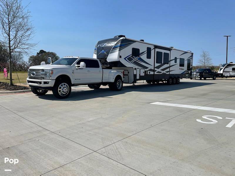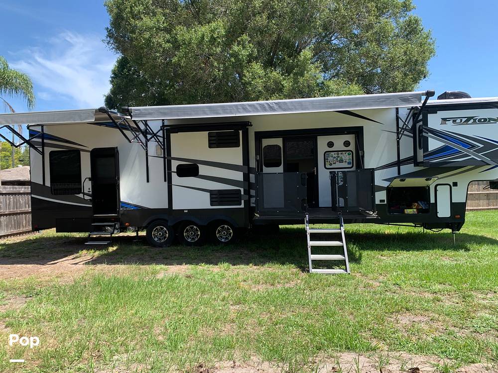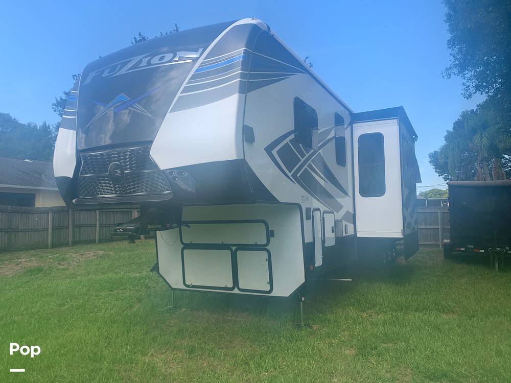 Introducing the 2021 Keystone Fuzion 424 Fifth Wheel, a premier choice for those seeking adventure without sacrificing comfort. This meticulously designed RV offers a spacious and luxurious experience, perfect for families or groups up to seven. With a length of 37 feet, the Fuzion 424 combines functionality with style, ensuring every journey is as enjoyable as the destination.