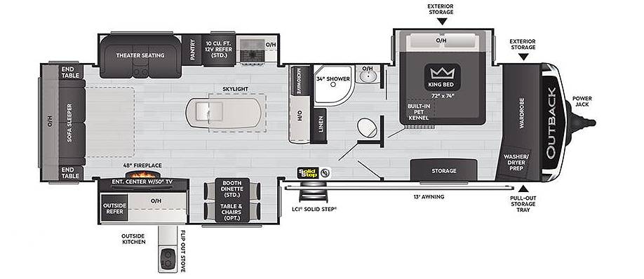 On the outside, the Keystone Outback 330RL boasts a sleek and stylish design that's sure to turn heads at any campsite. With its durable construction and reliable performance, you can trust this RV to handle all your travel needs. Whether you're a seasoned road tripper or new to the RV lifestyle, this travel trailer is easy to tow and set up, making it a great choice for anyone looking to hit the road in style. Don't miss out on the opportunity to own this fantastic RV—your next adventure awaits!