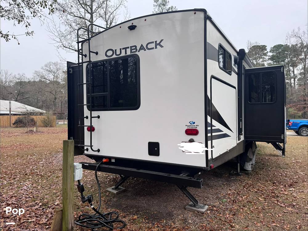 Beyond its interior comforts, the Outback 340BH boasts a robust construction and innovative features that enhance its performance on the road. The exterior is equipped with an awning, providing a shaded outdoor space for relaxation or dining. With its sleek design and durable build, this travel trailer is not only aesthetically pleasing but also built to withstand the rigors of travel. Whether you're embarking on a cross-country journey or a weekend getaway, the 2021 Keystone Outback 340BH Travel Trailer promises an unparalleled travel experience, combining luxury, practicality, and the freedom to explore.
