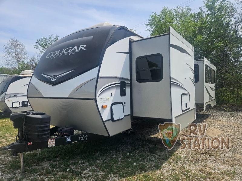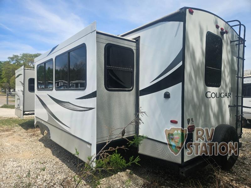 Step inside to experience the luxury of two slide-outs that significantly expand your living space, offering ample room for relaxation and entertainment. The Cougar Half-Ton 30RKD comfortably sleeps up to five people, making it perfect for family getaways or trips with friends. The thoughtfully designed interior features a rear kitchen layout, providing a functional and stylish space to prepare meals. Enjoy the convenience of modern appliances and ample storage, ensuring you have everything you need for a comfortable journey.
