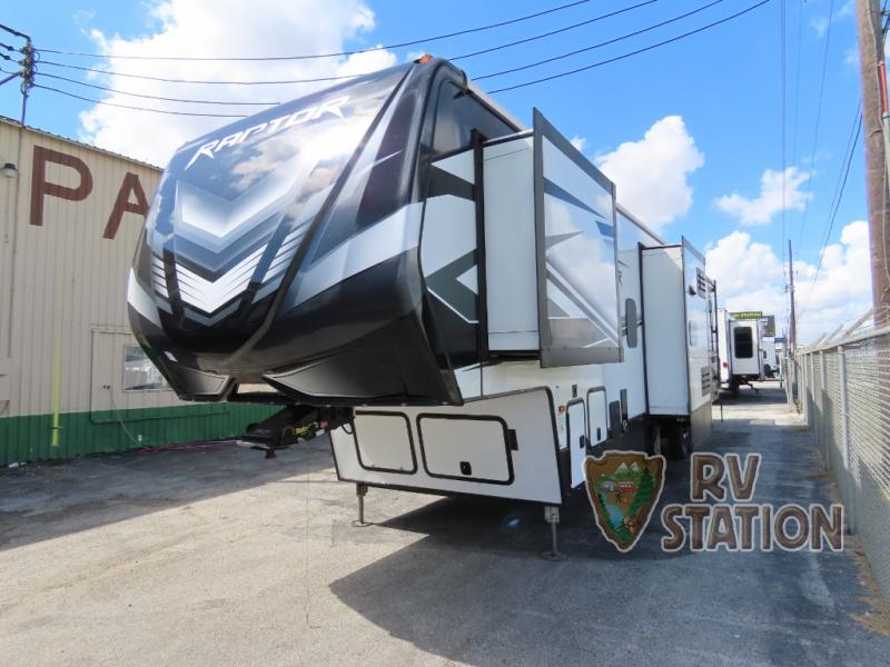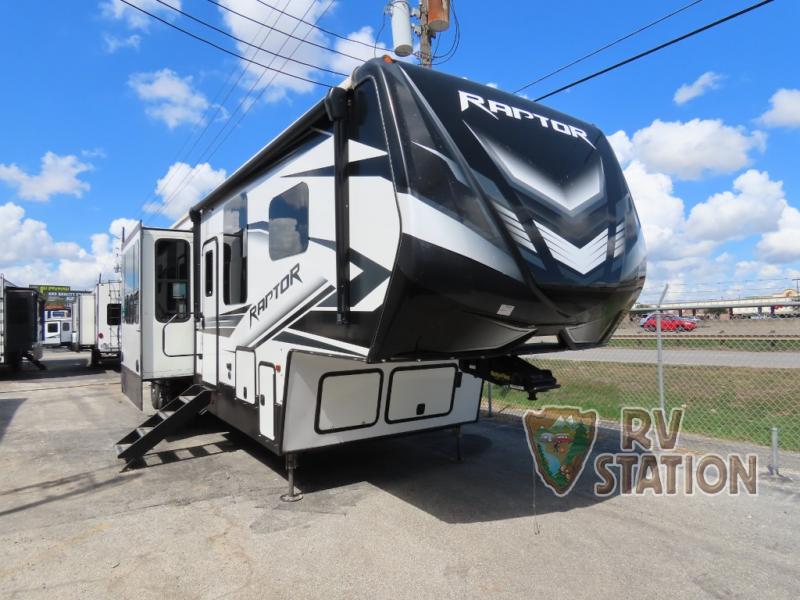 Discover the ultimate adventure companion with the 2021 Keystone RV Raptor 415 Fifth Wheel. This luxurious and robust RV is designed for those who crave the thrill of the open road without sacrificing comfort and style. Measuring an impressive 44 feet in length, the Raptor 415 offers ample space for all your travel needs, making it perfect for both short getaways and extended road trips.