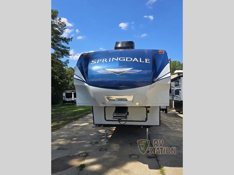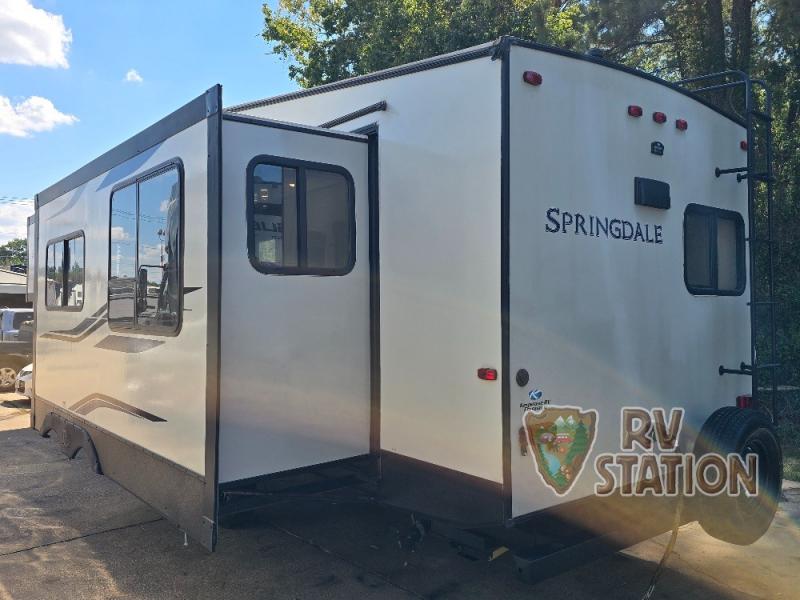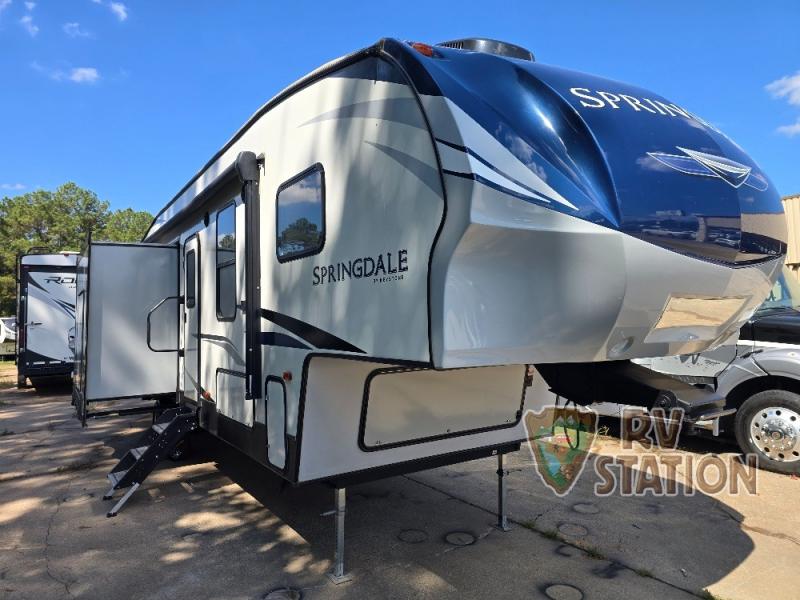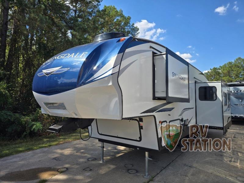 Inside, the Springdale 302FWRK can comfortably sleep up to five people, making it ideal for family getaways or trips with friends. The thoughtfully designed floor plan includes a cozy master bedroom, a convertible sofa, and a dinette that transforms into an additional sleeping area. The well-equipped kitchen features modern appliances and plenty of counter space, allowing you to prepare meals with ease. The living area is perfect for unwinding after a day of adventure, with ample seating and entertainment options.