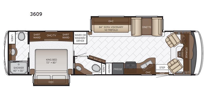 Equipped with two expansive slide-outs, the Bay Star 3609 maximizes interior space, providing a roomy and inviting living area. The thoughtfully designed layout includes a fully equipped kitchen, a cozy dining area, and a plush seating space, ensuring that every journey is as comfortable as it is memorable. The master bedroom offers a tranquil retreat with a luxurious queen-sized bed, while additional sleeping arrangements ensure everyone has a restful night's sleep.