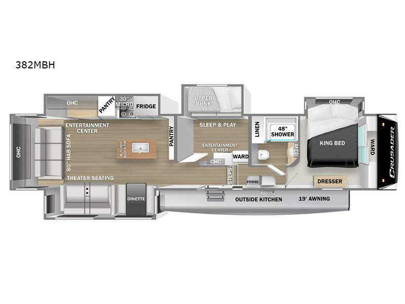 Discover the perfect blend of comfort and adventure with the 2021 Prime Time RV Crusader 382MBH Fifth Wheel. This spacious and stylish RV is designed for families and groups who love to explore without sacrificing the comforts of home. With four slide-outs, this RV expands to offer ample living space, ensuring everyone has room to relax and enjoy the journey. Whether you're embarking on a weekend getaway or an extended road trip, the Crusader 382MBH is your ideal travel companion.
