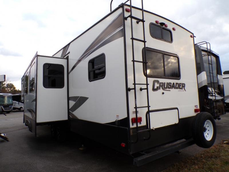 Inside, you'll find a range of amenities designed to enhance your travel experience. The sleeping quarters are designed to provide restful nights, while the kitchen is equipped with modern appliances to make meal preparation a breeze. The living area is perfect for unwinding after a day of adventure, offering a welcoming space to relax. Whether you're embarking on a weekend getaway or an extended road trip, the 2021 Prime Time RV Crusader 395BHL Fifth Wheel promises a journey of comfort and style. Don't miss the opportunity to own this exceptional RV and elevate your travel experiences.