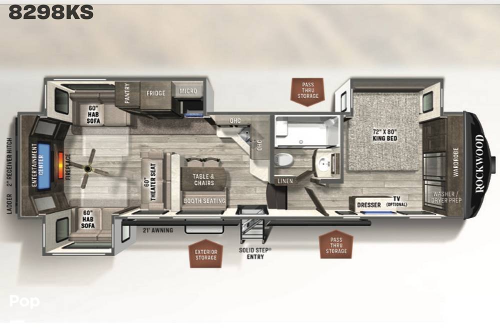 Introducing the 2021 Rockwood Signature 8298KS Fifth Wheel, a meticulously crafted RV designed for those who seek both luxury and practicality in their travels. With a length of 31 feet, this fifth wheel offers a spacious and comfortable living environment, perfect for families or groups of up to six people. Its thoughtful design and high-quality construction make it an ideal choice for both short getaways and extended adventures.