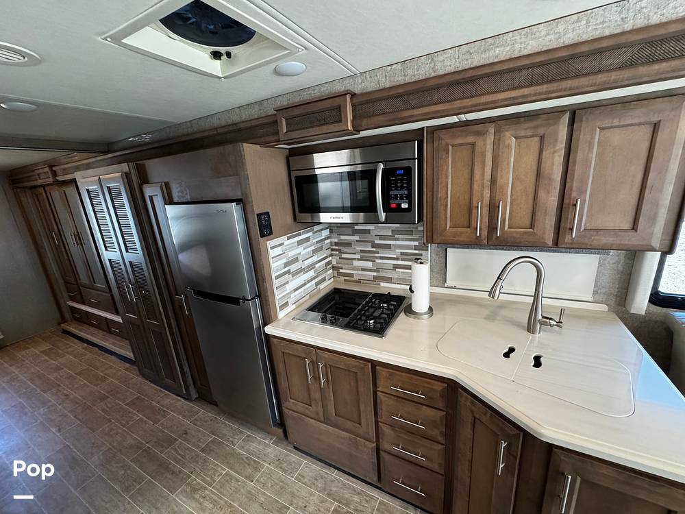 Step inside to find a thoughtfully designed interior that maximizes comfort and convenience. The Miramar 32.2 features a well-equipped kitchen with modern appliances, including a refrigerator, microwave, and stovetop, allowing you to prepare meals with ease. The living area is designed for relaxation, featuring plush seating and a large flat-screen TV for entertainment on the go. Sleeping arrangements are versatile, with a king-size bed in the master suite, convertible sofa beds, and a drop-down overhead bunk, ensuring everyone has a cozy place to rest.