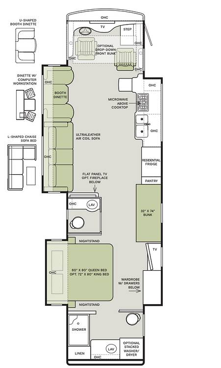Equipped with a robust fuel capacity of 379 liters, the Allegro RED 38KA ensures you can travel longer distances with fewer stops, giving you more time to explore and enjoy your destinations. The interior is thoughtfully designed with high-quality finishes and modern amenities, providing a home-like atmosphere on the road. The spacious living area, fully equipped kitchen, and multiple sleeping arrangements, including a master suite, bunk beds, and convertible sofas, ensure everyone travels in comfort and style.