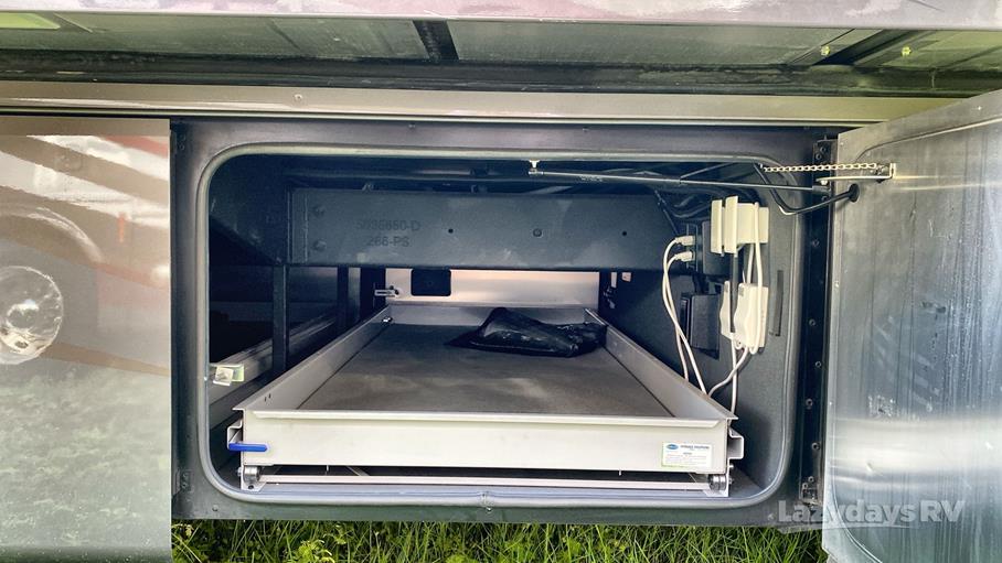 This motorhome features four slide-outs, significantly expanding the interior space to provide a roomy and inviting atmosphere. The well-appointed interior includes high-quality furnishings and finishes, ensuring a comfortable and stylish environment. The kitchen is equipped with modern appliances, making meal preparation a breeze, while the living area offers plenty of seating for relaxation and entertainment. The bedroom is a private retreat, complete with a comfortable bed and ample storage space.
