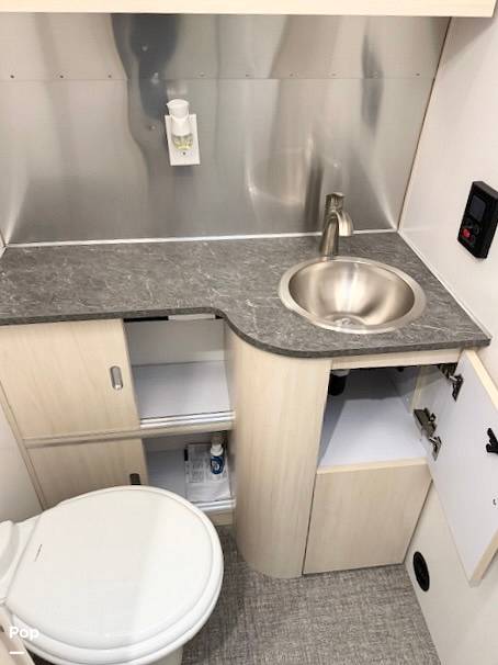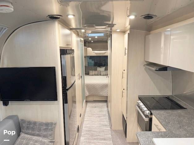 Inside, the Airstream Flying Cloud can comfortably sleep up to five people, making it ideal for family getaways or trips with friends. The interior is thoughtfully designed with a queen-sized bed, a convertible dinette, and a lounge area that transforms into additional sleeping space. The high-quality furnishings and modern amenities ensure a comfortable and enjoyable stay, whether you're parked at a campsite or exploring the open road. The kitchen is equipped with state-of-the-art appliances, including a stove, microwave, and refrigerator, allowing you to prepare meals with ease.