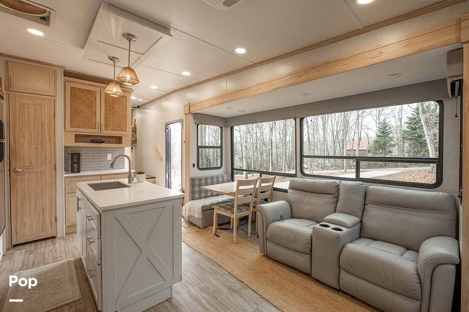 Introducing the 2022 Alliance RV Avenue 32RLS Fifth Wheel, a pinnacle of luxury and comfort for the discerning traveler. This meticulously crafted RV is designed to provide an unparalleled experience on the road, combining elegance with functionality. With a length of 27 feet, this fifth wheel offers ample space for both relaxation and entertainment, making it an ideal choice for families or couples seeking adventure without compromising on comfort.