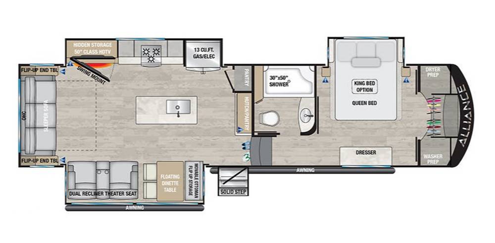 Introducing the 2022 Alliance RV Avenue 32RLS Fifth Wheel, a premium choice for those seeking comfort and luxury on the road. This meticulously designed RV offers an exceptional blend of style, functionality, and durability, making it an ideal companion for both short getaways and extended adventures. With a length of 29 feet, this fifth wheel provides ample space without compromising on maneuverability, ensuring a seamless travel experience.