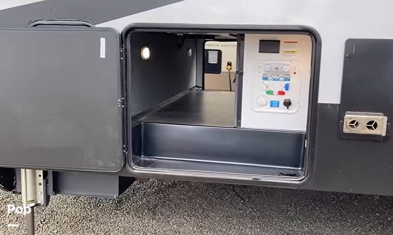 Inside, you'll find all the comforts of home. The Valor 40V13 boasts a modern and stylish interior with plenty of room to stretch out and relax. The kitchen is fully equipped with everything you need to whip up a delicious meal after a day of adventure. Plus, there’s ample storage space to keep all your gear organized and out of the way. The living area is cozy and inviting, perfect for movie nights or just hanging out.