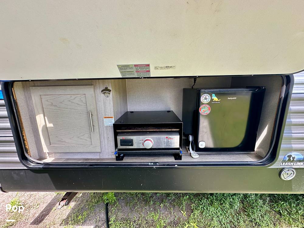 The exterior of the Coachmen Catalina 303QBCK is built to withstand the elements, featuring durable construction and a sleek design. It includes an outdoor kitchen, perfect for enjoying meals under the open sky, and ample storage space for all your travel gear. Whether you're planning a weekend getaway or an extended road trip, this travel trailer offers the perfect combination of functionality and style. Experience the freedom of the open road with the 2022 Coachmen Catalina 303QBCK, where every journey becomes a memorable adventure.