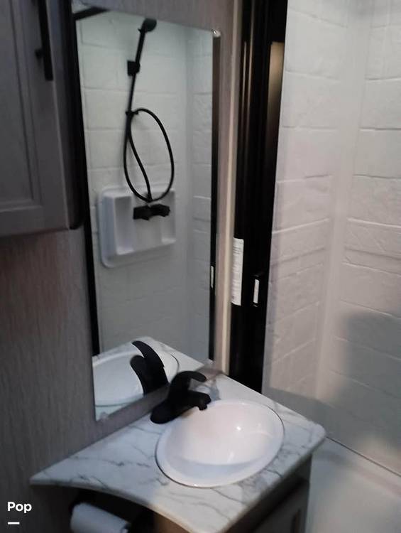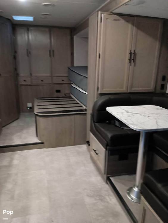 Step inside to discover a thoughtfully designed living space that maximizes comfort and convenience. The Prism 24FS features a fully equipped kitchen with a refrigerator, microwave, and stovetop, allowing you to prepare meals with ease. The cozy dinette area provides a perfect spot for family meals or game nights. The sleeping arrangements include a comfortable queen bed, a convertible dinette, and an overhead bunk, ensuring everyone has a restful night's sleep. The modern bathroom offers a shower, sink, and toilet, providing all the comforts of home on the road.
