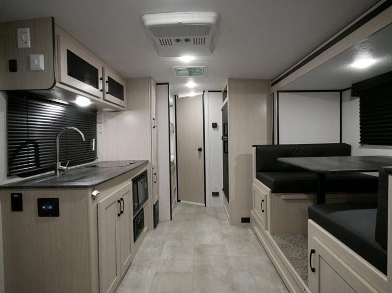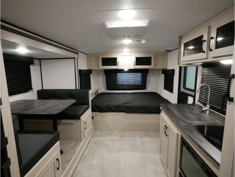 Measuring approximately 18 feet in length, the Apex Nano is compact enough for easy towing yet spacious enough to accommodate up to five sleepers comfortably. The clever layout includes a slide-out that expands your living space, providing ample room for relaxation and entertainment. Inside, you'll find cozy sleeping arrangements, including a queen bed, bunk beds, and a convertible dinette, ensuring everyone has a comfortable place to rest after a day of adventure.