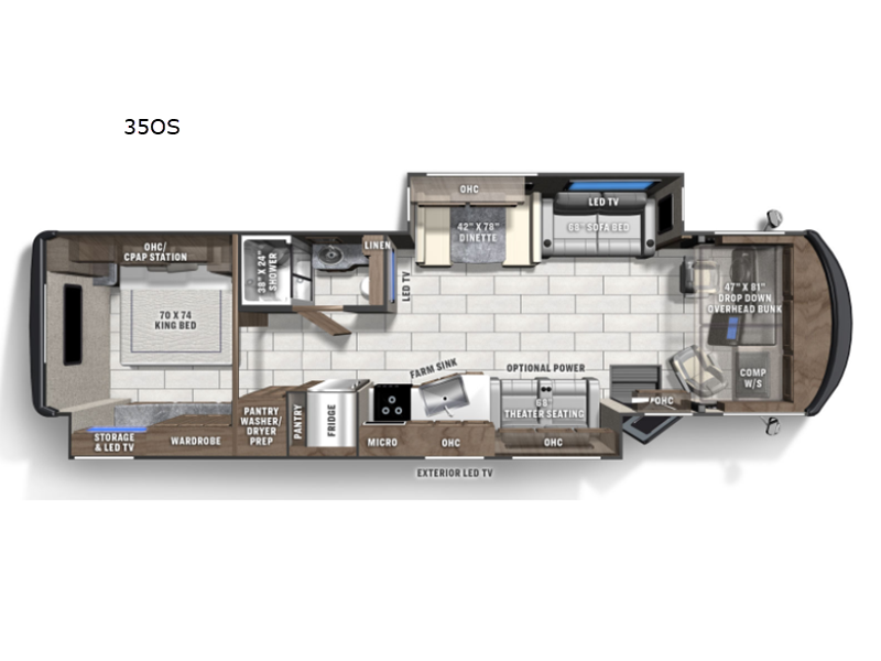 This Coachmen Mirada is engineered to accommodate up to six sleepers, making it ideal for family trips or group excursions. The interior is thoughtfully designed with high-quality materials and finishes, offering a welcoming atmosphere that feels like a home away from home. The RV boasts a substantial fuel capacity of 303 liters, ensuring that you can travel long distances with fewer stops, allowing you to focus on the journey and the destinations ahead.