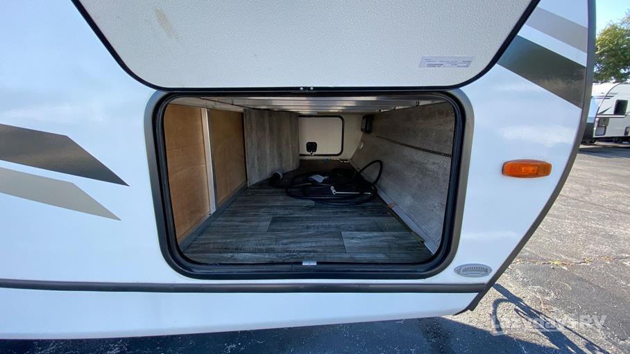 Step inside and you'll find a smart layout that maximizes space and comfort. The single slide-out expands your living area, giving you extra room to kick back and enjoy. The interior is designed with modern finishes and thoughtful touches that make it feel like a home away from home. Imagine cooking up a storm in the fully-equipped kitchen, lounging in the comfy seating area, or getting a good night's sleep in the cozy bedroom. Plus, there's plenty of storage for all your gear, so you can bring along everything you need for your adventures.