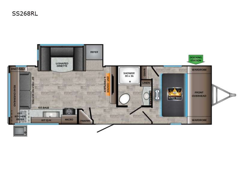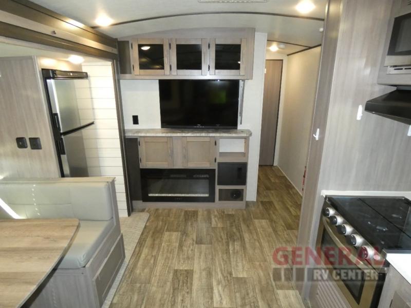 Inside, you’ll find a spacious layout thanks to the single slide-out, which creates a roomy living area perfect for relaxing after a day of exploring. The Sunset Trail can comfortably sleep up to four people, making it great for family trips or a getaway with friends. The interior is thoughtfully designed with cozy seating, a fully-equipped kitchen, and a modern bathroom, ensuring you have all the comforts of home while on the road.
