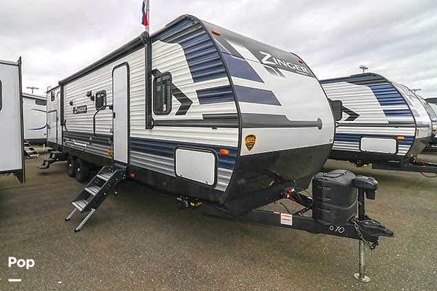 Looking for the perfect home on wheels for your next adventure? Check out this 2022 CrossRoads Zinger 328SB Travel Trailer! This beauty is 30 feet long and ready to take you and your crew on unforgettable journeys. With room to sleep up to 10 people, it's perfect for family trips, group getaways, or just having plenty of space to stretch out and relax.