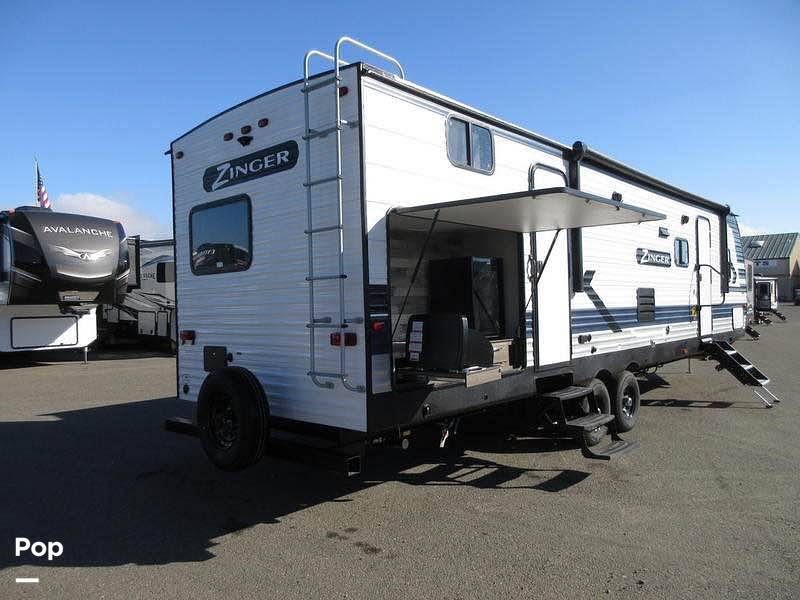 Outside, the Zinger is just as impressive. It's built to last with durable materials and a sleek design that turns heads wherever you go. Plus, with plenty of storage space, you can bring along all your gear without a second thought. Whether you're hitting the open road or setting up camp in your favorite spot, this travel trailer is your ticket to adventure. Don't miss out on making memories in this fantastic RV!