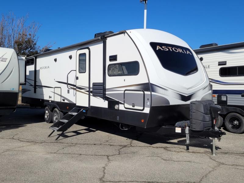 Introducing the 2022 Dutchmen RV Astoria 2913FK Travel Trailer, a masterpiece of modern engineering and design, crafted to elevate your travel experiences to unparalleled heights. This exceptional travel trailer, measuring approximately 8 meters in length, embodies the perfect blend of luxury, functionality, and innovation, making it an ideal choice for discerning adventurers seeking comfort and style on the road.