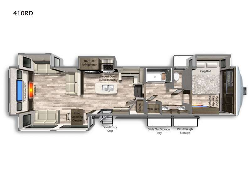 Featuring four slide-outs, the Yukon 410RD maximizes interior space, providing a roomy and inviting atmosphere. It comfortably sleeps up to six people, ensuring everyone has a cozy place to rest after a day of exploration. The thoughtfully designed layout includes a master bedroom, a convertible sofa, and additional sleeping options, making it ideal for families or groups.