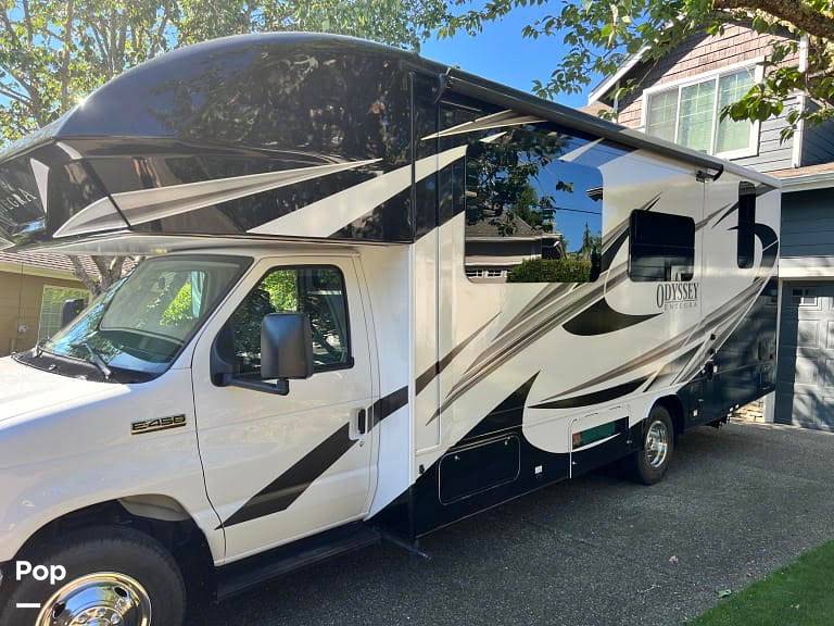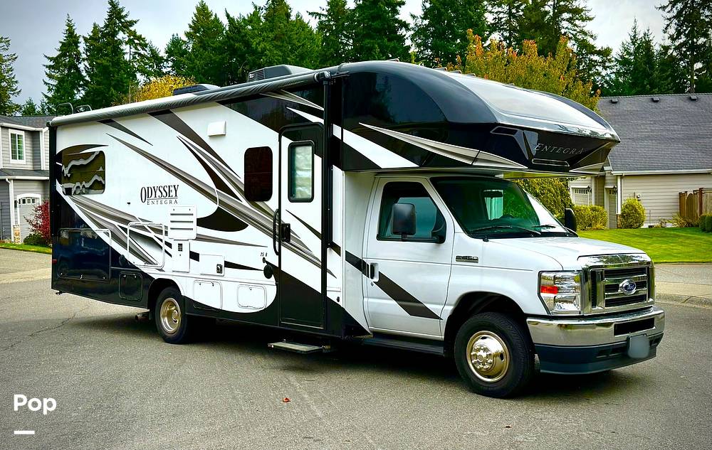 The Entegra Coach Odyssey 25R is not just about comfort; it's also about convenience and reliability. With ample storage space, both inside and out, you can bring along all your essentials and more. The RV is equipped with a powerful engine and advanced safety features, giving you peace of mind as you embark on your journey. Whether you're planning a weekend getaway or an extended road trip, this RV is ready to make your travel dreams a reality. Don't miss out on the opportunity to own this fantastic vehicle—your next adventure awaits!