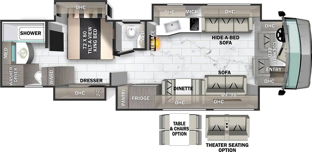 Measuring an impressive 34 feet in length, the Berkshire XL 40D provides ample space for relaxation and entertainment. Inside, you'll find a beautifully appointed interior featuring high-quality finishes and modern conveniences. The spacious living area is perfect for unwinding after a day of exploration, while the fully equipped kitchen allows you to prepare delicious meals on the go. Enjoy restful nights in the cozy sleeping quarters, which include a master bedroom and additional sleeping spaces to accommodate everyone comfortably.