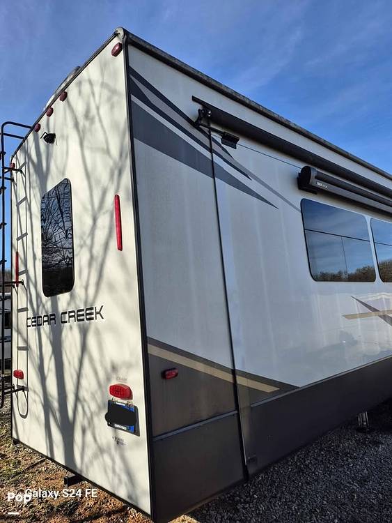 Discover the ultimate in comfort and adventure with the 2022 Forest River Cedar Creek 388RK Fifth Wheel! This stunning RV is your ticket to exploring the great outdoors without sacrificing the comforts of home. With a spacious design that can comfortably sleep up to six people, it's perfect for family getaways or trips with friends. Measuring an impressive 35 feet in length, this RV offers ample space for everyone to relax and enjoy.