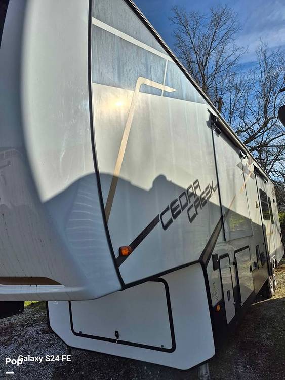 Outside, the Cedar Creek 388RK continues to impress with its durable construction and thoughtful features. Whether you're setting up camp in the mountains or by the beach, the easy-to-use leveling system and spacious storage compartments make setup a breeze. Plus, with its sleek design and high-quality materials, this RV is as stylish as it is functional. Don't miss your chance to own this incredible RV and start making memories that will last a lifetime. Adventure awaits with the 2022 Forest River Cedar Creek 388RK Fifth Wheel!