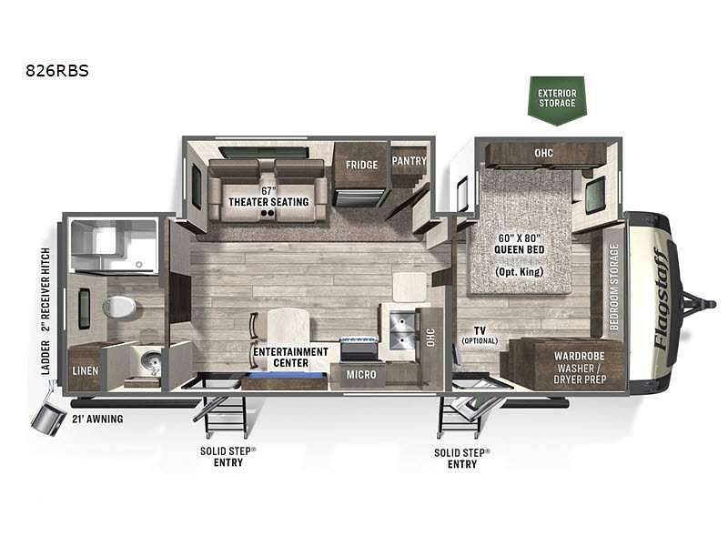 Built with quality and durability in mind, the Forest River Flagstaff 826RBS boasts a robust construction and high-end finishes. The exterior features a sleek design with easy-to-use awnings, providing shade and shelter for outdoor enjoyment. With its efficient layout and thoughtful amenities, this travel trailer is ready to accompany you on countless journeys, offering both comfort and reliability. Whether you're exploring the countryside or setting up camp by the beach, the 2022 Forest River Flagstaff 826RBS is your ticket to unforgettable adventures.