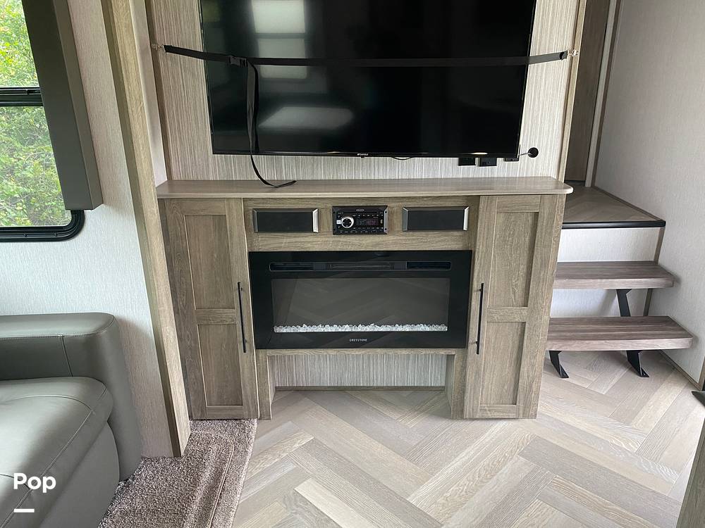 Additional features include a spacious bathroom with a shower, ample storage throughout, and climate control to keep you comfortable in any weather. The exterior boasts an awning for outdoor enjoyment and storage compartments for all your travel essentials. Whether you're embarking on a cross-country journey or a weekend getaway, the 2022 Forest River Heritage Glen 356QB Fifth Wheel is your ticket to unforgettable adventures. Don't miss the opportunity to own this exceptional RV that combines style, comfort, and practicality.