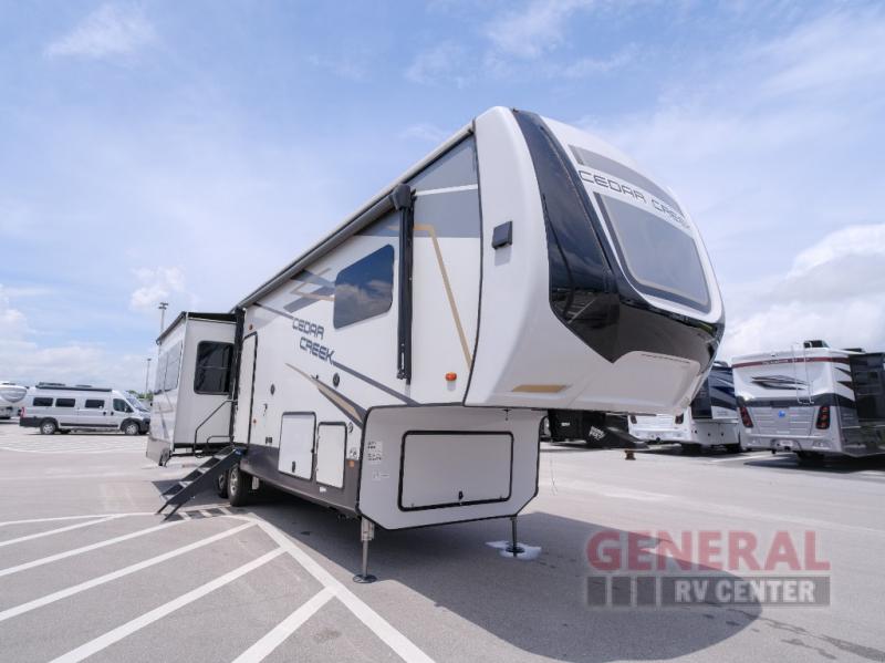 Introducing the 2022 Forest River RV Cedar Creek 345IK Fifth Wheel, a luxurious and spacious retreat on wheels designed for those who seek comfort and elegance in their travels. With a length of 32 feet, this meticulously crafted RV offers ample space for relaxation and entertainment, making it an ideal choice for both short getaways and extended adventures.