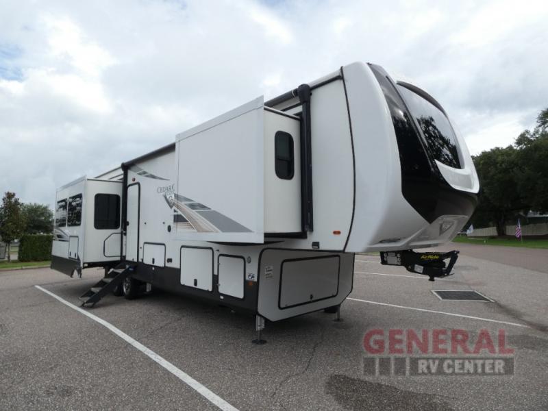 Looking for the perfect home on wheels? Check out this 2022 Forest River RV Cedar Creek Champagne Edition 38EBS Fifth Wheel! With its sleek design and top-notch features, this RV is ready to take your adventures to the next level. Measuring about 36 feet in length, this beauty offers plenty of space for you and your travel companions to stretch out and relax.