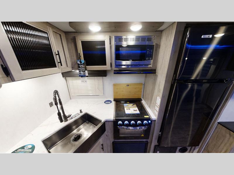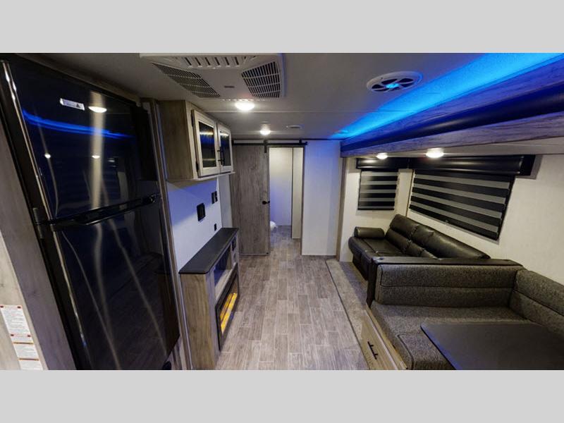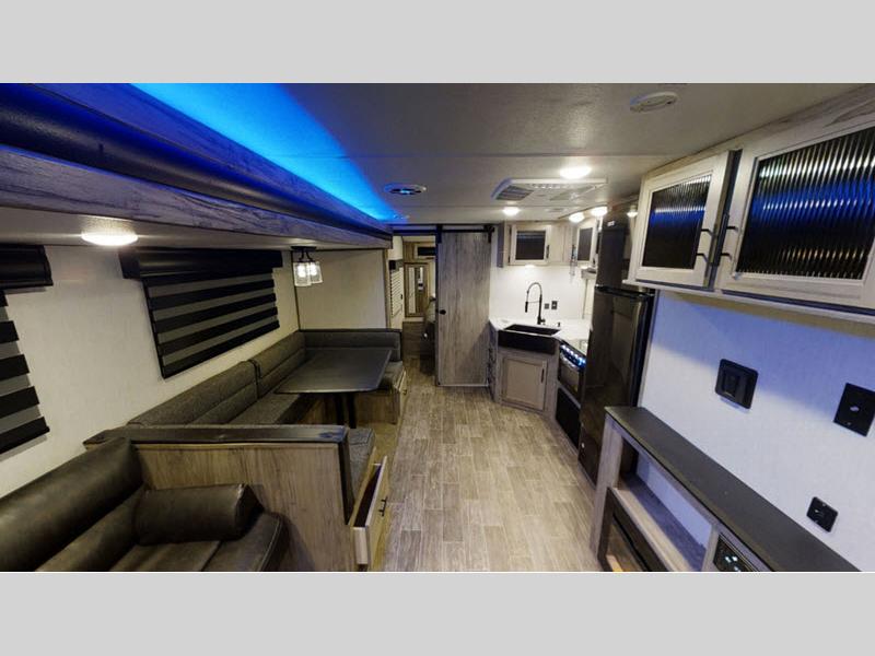 This travel trailer is engineered to accommodate up to six people comfortably, making it ideal for family getaways or trips with friends. The intelligently designed interior features a spacious sleeping arrangement, including a cozy master bedroom and convertible sleeping areas, ensuring everyone has a restful night's sleep. The well-appointed kitchen and dining area are perfect for preparing and enjoying meals together, while the modern bathroom facilities provide all the conveniences of home.