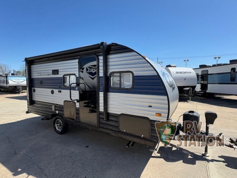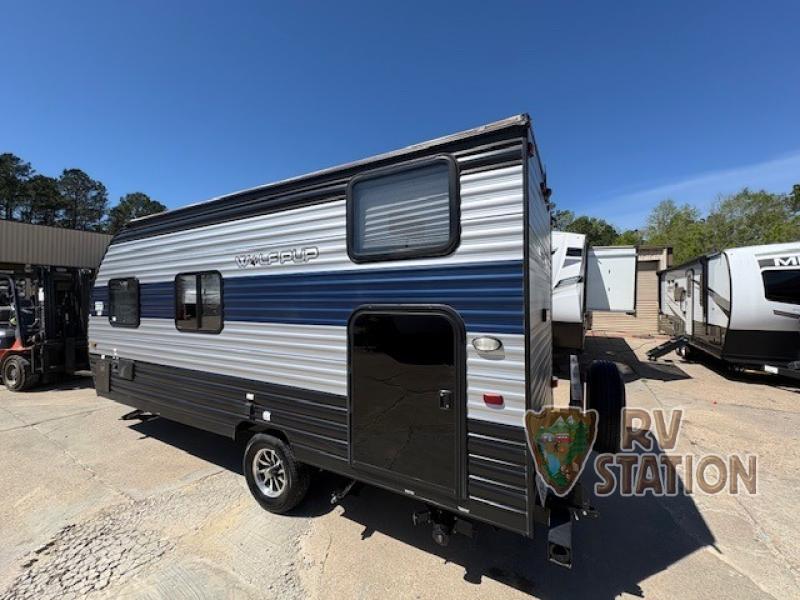 Inside, the Cherokee Wolf Pup 16BHS is thoughtfully laid out to maximize space and comfort. It can comfortably sleep up to five people, making it perfect for family adventures or trips with friends. The interior features a cozy sleeping area, a well-equipped kitchenette, and a compact dining space, ensuring you have all the essentials for a comfortable stay. The efficient use of space allows for a practical and enjoyable living experience, with storage solutions cleverly integrated to keep your belongings organized and accessible.