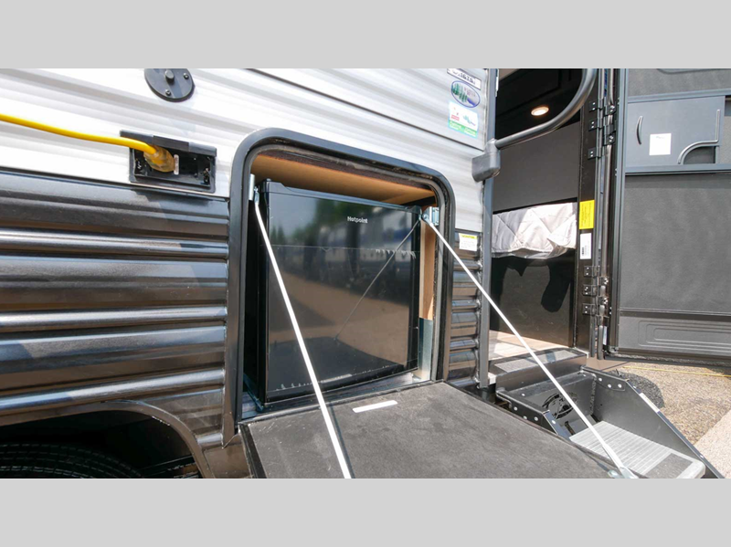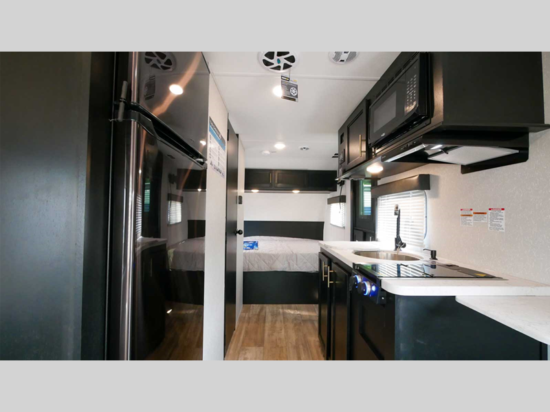 Inside, the Cherokee Wolf Pup 16TS is thoughtfully designed to maximize space and functionality. It comfortably sleeps up to three people, making it perfect for intimate getaways or small family trips. The interior layout is optimized to provide a cozy living space, featuring a well-equipped kitchenette, a comfortable sleeping area, and a compact yet efficient bathroom. The high-quality materials and finishes throughout the trailer ensure durability and a touch of luxury, enhancing your travel experience.