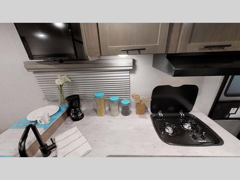 Inside, the No Boundaries NB19.6 features a cleverly designed layout that includes one slide-out, maximizing your living space without compromising on convenience. It comfortably sleeps up to four people, making it perfect for families or small groups of friends. The interior is thoughtfully appointed with modern amenities, ensuring a cozy and enjoyable stay wherever your travels take you.