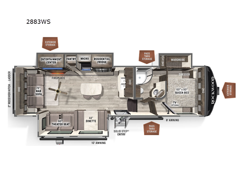 The bedroom is a sanctuary with a comfy queen-size bed and ample wardrobe space. The bathroom boasts a spacious shower and all the necessities to freshen up on the go. With a dry weight of around 3,900 kilograms, this RV is easy to tow and maneuver. Whether you're planning a weekend getaway or a cross-country adventure, the Rockwood Ultra Lite 2883WS is your ticket to travel freedom. Don't miss out on this opportunity to own a top-notch RV that's as ready for adventure as you are!