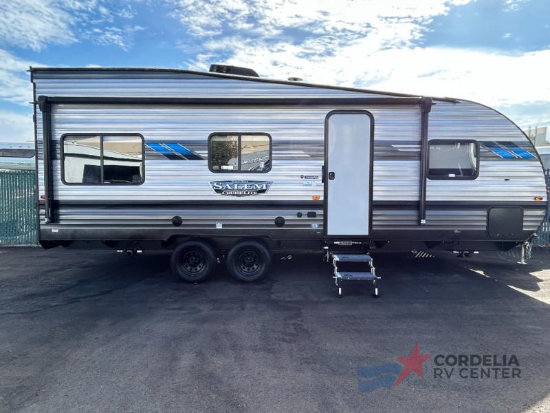 Introducing the 2022 Forest River RV Salem Cruise Lite 211SSXL Toy Hauler, a versatile and robust travel companion designed to elevate your outdoor adventures. With a length of 23 feet, this RV strikes the perfect balance between spaciousness and maneuverability, making it an ideal choice for families and outdoor enthusiasts alike. Weighing approximately 2,389 kilograms, the Salem Cruise Lite is engineered for easy towing, ensuring a smooth journey to your favorite destinations.