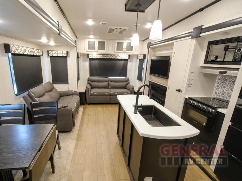 The Wildcat 369MBL is engineered to accommodate up to eight individuals, making it perfect for family vacations or group excursions. The intelligently designed floor plan includes a master bedroom, a cozy loft, and additional sleeping areas, ensuring everyone has their own space to unwind. The interior is elegantly appointed with high-quality furnishings and modern amenities, providing a home-like atmosphere on the road. The kitchen is equipped with state-of-the-art appliances, allowing for gourmet meal preparation even in the most remote locations.