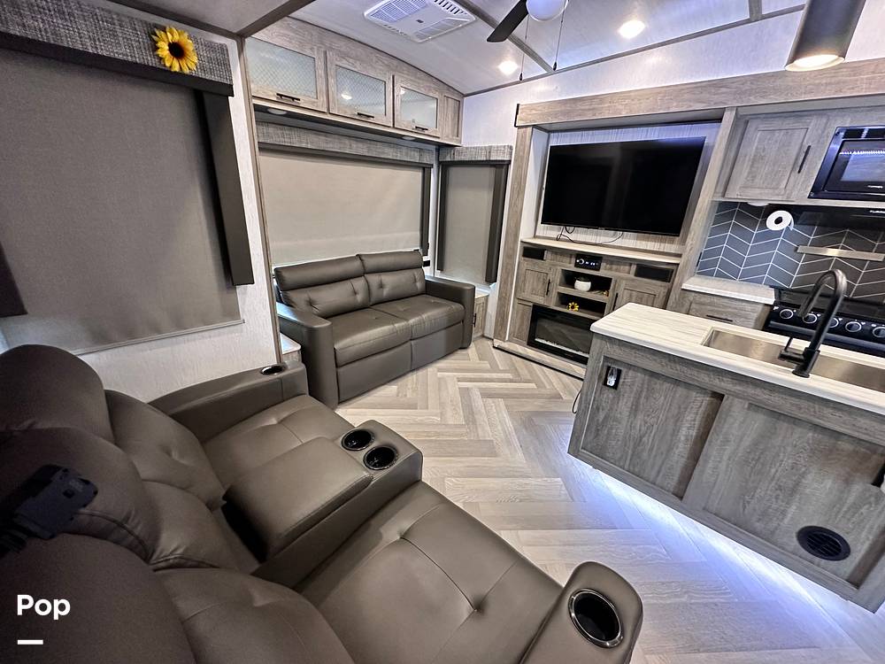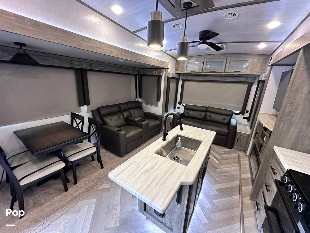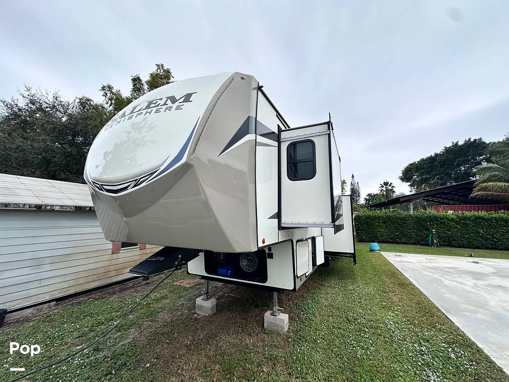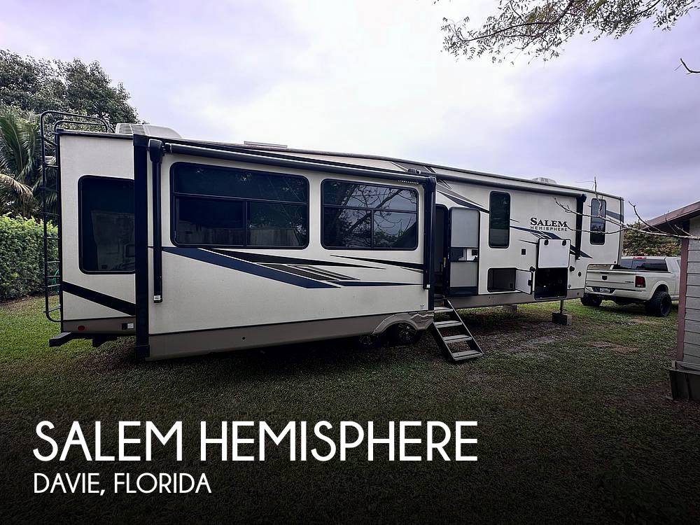 The Salem Hemisphere 369BL is packed with features to enhance your travel experience. Enjoy modern amenities like a fully-equipped kitchen with a fridge, stove, and microwave, so you can whip up your favorite meals on the go. The living area is perfect for chilling out after a day of adventure, with a comfy seating area and entertainment options. Plus, with plenty of storage space, you can bring along all your gear and essentials. Don't miss out on the chance to own this fantastic travel trailer and make unforgettable memories on the road!