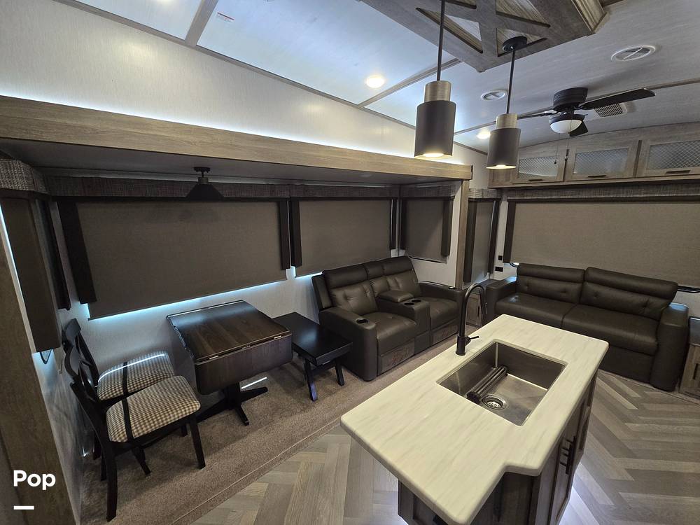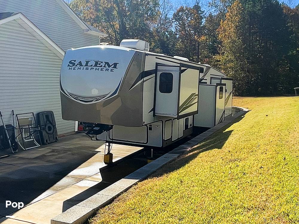 The 2022 Forest River Salem Hemisphere M-369BL also prioritizes convenience and comfort with its sleeping arrangements. It includes a master bedroom with a cozy queen-sized bed, additional sleeping spaces such as bunk beds, and convertible furniture to accommodate the entire family. The RV is equipped with a full bathroom, ensuring you have all the comforts of home while on the road. With its robust construction and attention to detail, this fifth wheel is built to withstand the rigors of travel while providing a luxurious retreat wherever your adventures take you. Experience the ultimate in RV living with the Forest River Salem Hemisphere Series M-369BL.