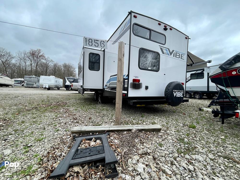 Outside, the Vibe 26BH continues to impress with its durable construction and sleek design. The exterior boasts a large awning, providing a shaded outdoor space for dining or lounging. With ample storage compartments, you can easily bring along all your gear and essentials. Whether you're planning a weekend getaway or an extended road trip, the 2022 Forest River Vibe 26BH Travel Trailer is your ticket to unforgettable adventures and cherished memories. Don't miss the chance to make this versatile and inviting RV your own!
