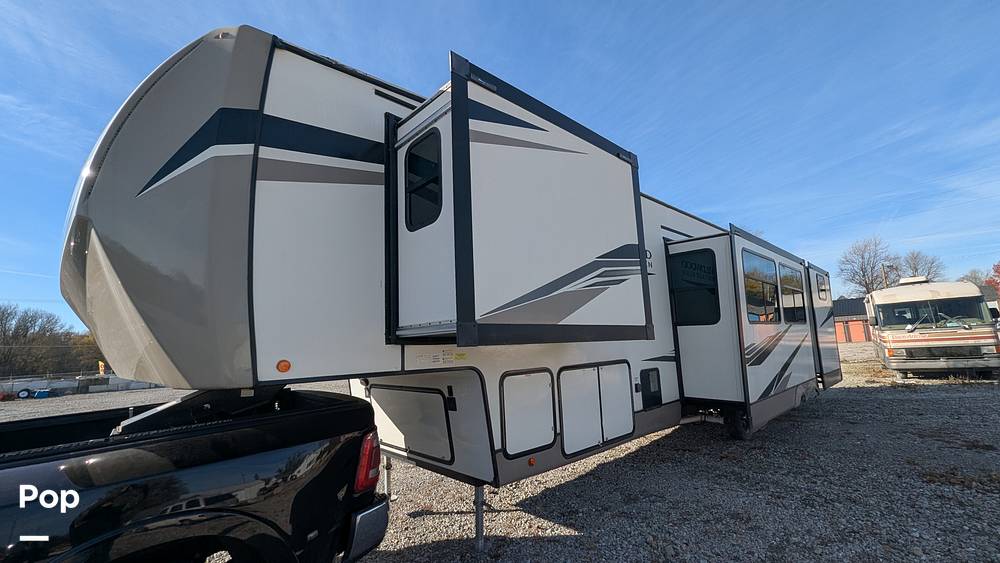 Spanning an impressive 36 feet in length, the Wildwood 356QB provides a spacious and inviting interior. The intelligently designed layout includes multiple sleeping areas, ensuring everyone has their own cozy space. The master suite offers a private retreat, while the bunkhouse is perfect for kids or guests. The living area is equipped with plush seating and a state-of-the-art entertainment system, making it ideal for relaxing after a day of adventure. The fully-equipped kitchen features modern appliances and ample storage, allowing you to prepare delicious meals with ease.